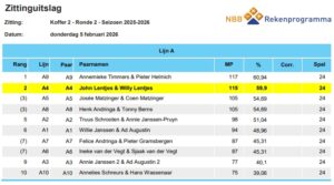 Annemieke Timmers en Pieter Helmich hebben koffer twee het beste gespeeld; maar de fles wijn gaat naat de nummers twee: John Lentjes en Willy Lentjes.